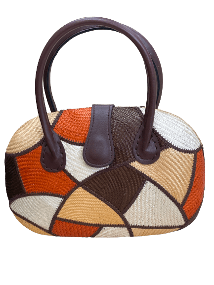 Muticolored Handheld bag with brown handle